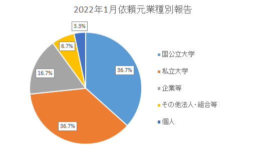 16 2月 2022 Home » 実績紹介 • 月次レポート » 2022年1月実績月次レポート 2022年1月実績月次レポート Posted in 実績紹介, 月次レポート By Knowledge_staff On 2月 16, 2022 ■■■ 今月のPickup案件 ■■■件名:学校法人様からオープンカレッジのアンケートの入力・集計・グラフ作成のご依頼をいただきました。→お見積り内容など詳細はこちらをご覧ください。 Related Posts Web情報抽出及び資料発送業務(750件程度) 2020年12月実績月次レポート 2021年3月実績月次レポート
